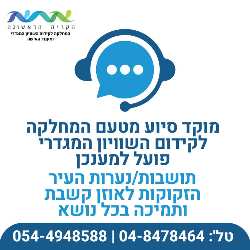 לחצו למוקד סיוע מטעם המחלקה לקידום השוויון המגדרי